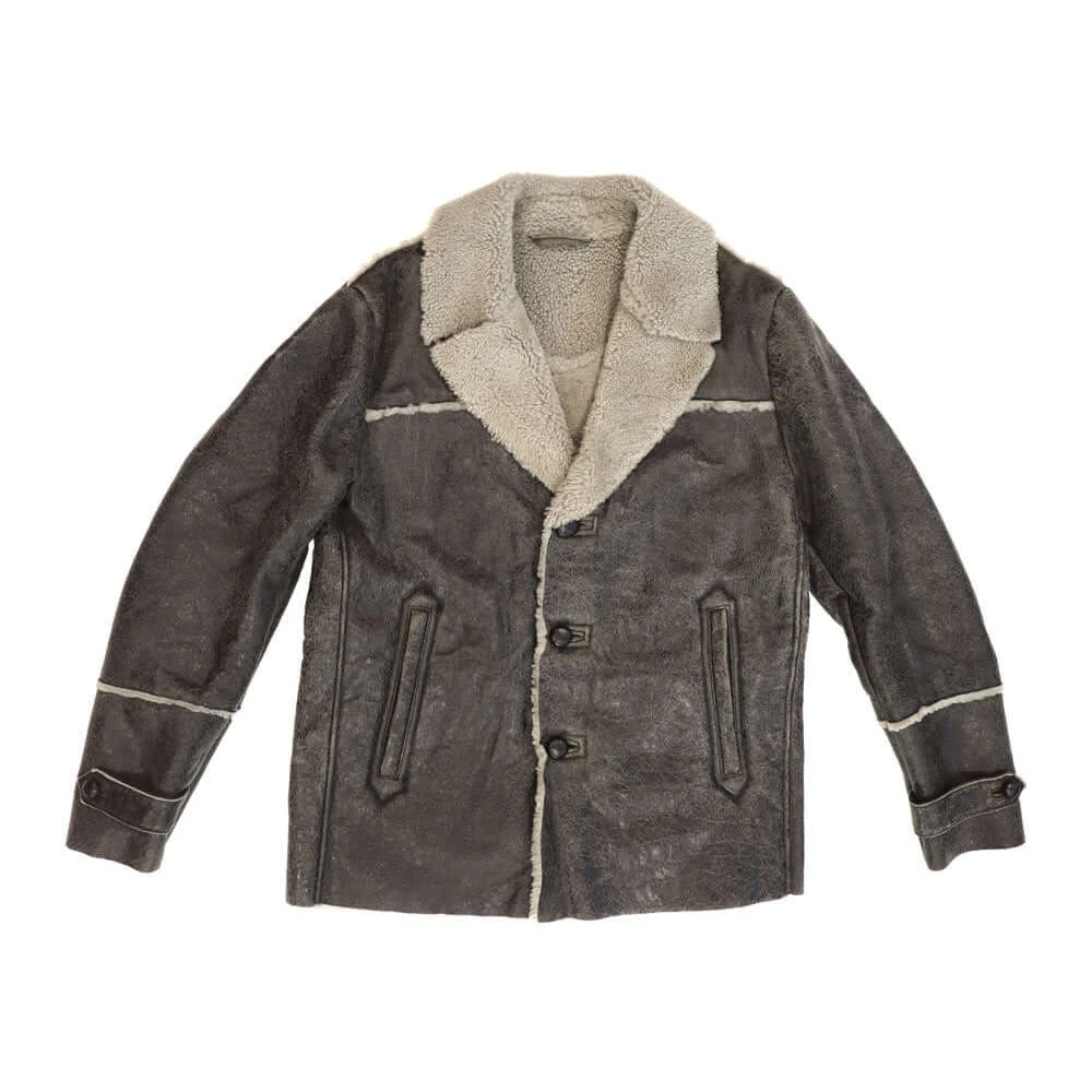 Forest Green leather jacket. Lining, contour and lapels in white shearling. Frontal buttons. Wrist bands with buttons. 2 side pockets. 100% sheepskin. Made in Italy.