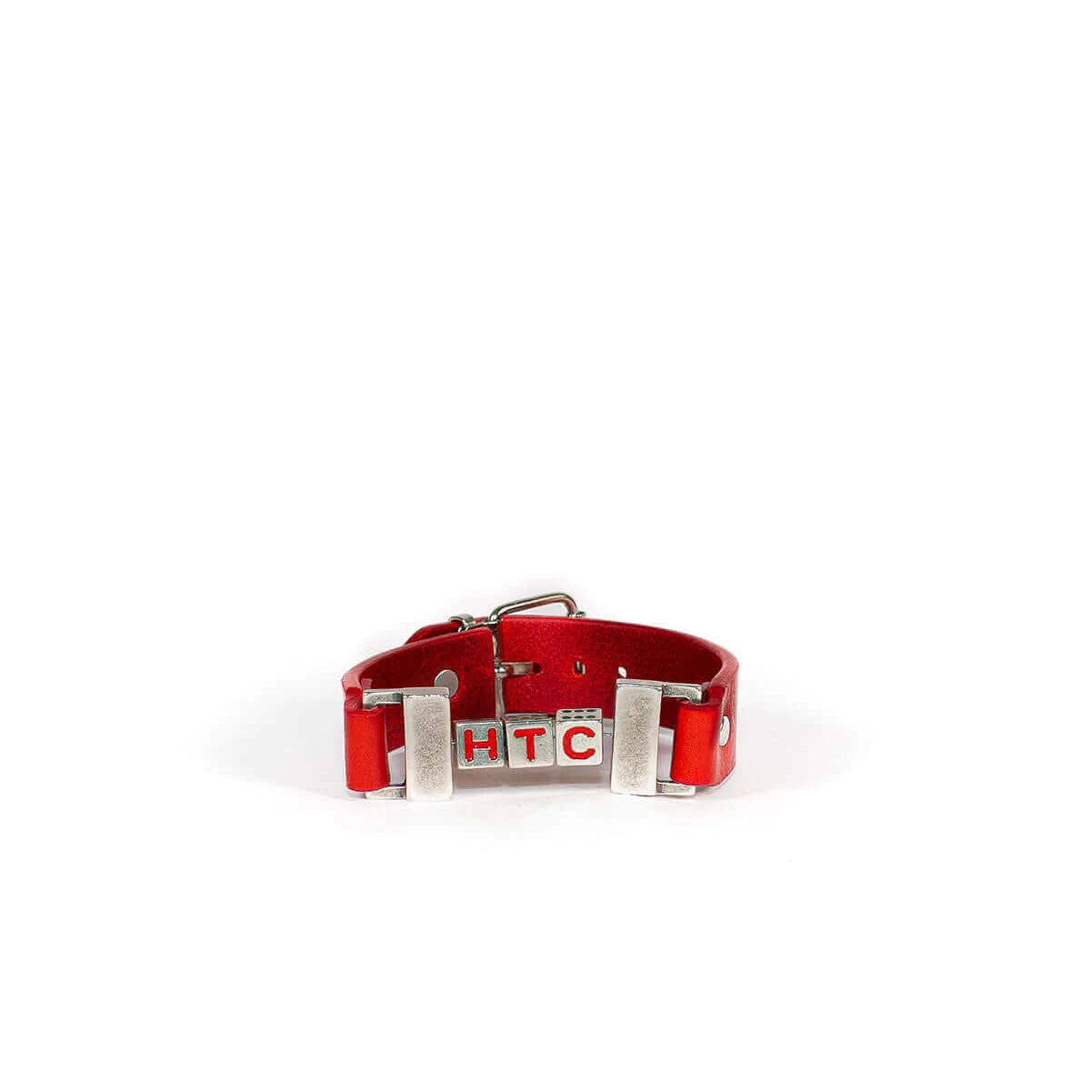Leather bracelet with metal ‘HTC dices’ detail. Buckle closure. Composition: 100% leather, 100% metal.