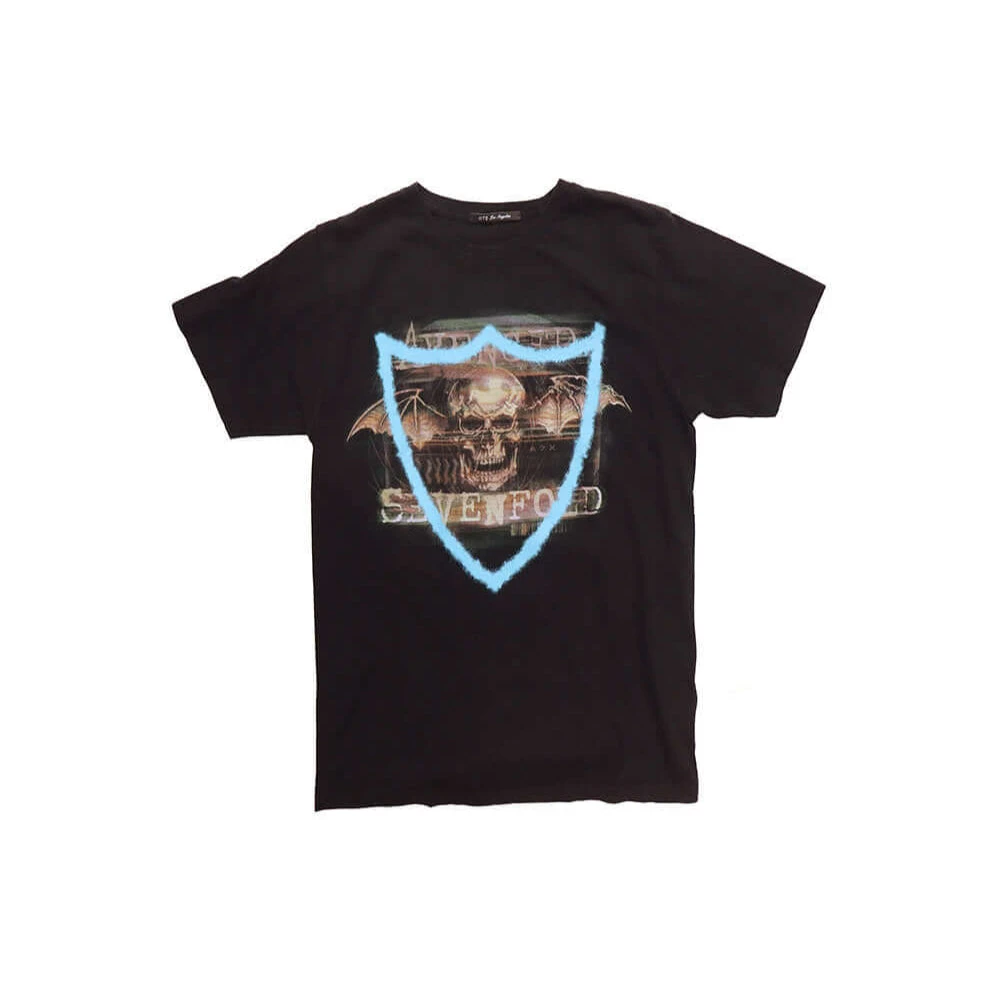 ONE OF A KIND VINTAGE T-SHIRT WITH ORIGINAL AVENGED SEVENFOLD PRINT, REWORKED WITH AZURE HTC LOGO ON THE FRONT. REGULAR FIT.