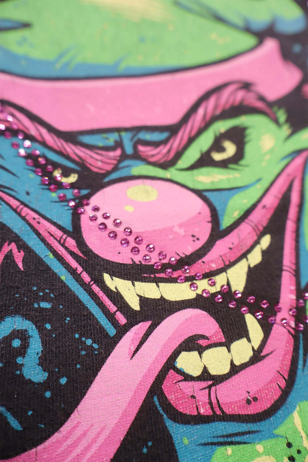 ONE OF A KIND VINTAGE T-SHIRT WITH ORIGINAL INSANE CLOWN POSSE PRINT, REWORKED WITH VIOLET STUDDED HTC LOGO ON THE FRONT. REGULAR TANK FIT.