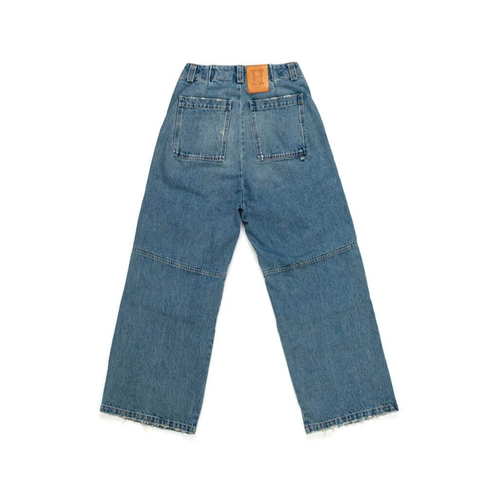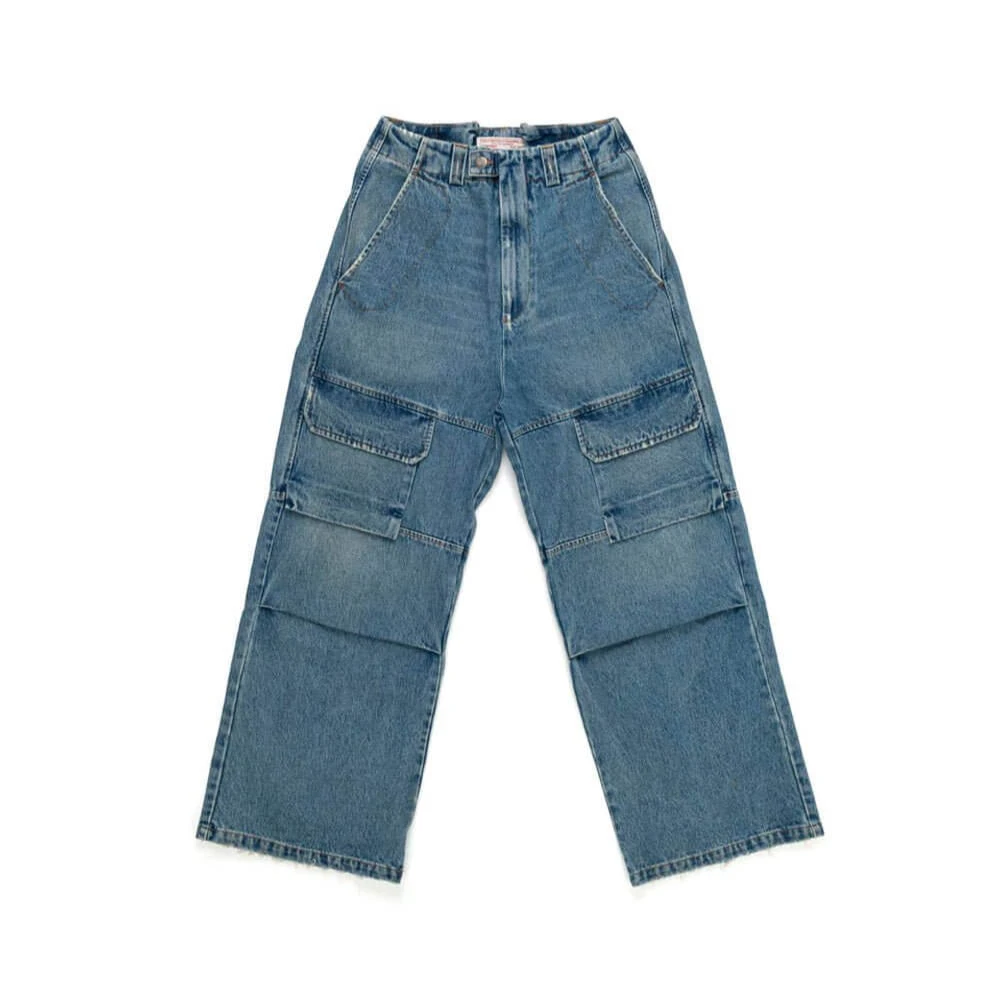 Cargo jeans with front button and zip closure. Frontal pockets. Back leather logo patch. Stonewashed coloring may vary. Five pockets. Composition: 100% Cotton